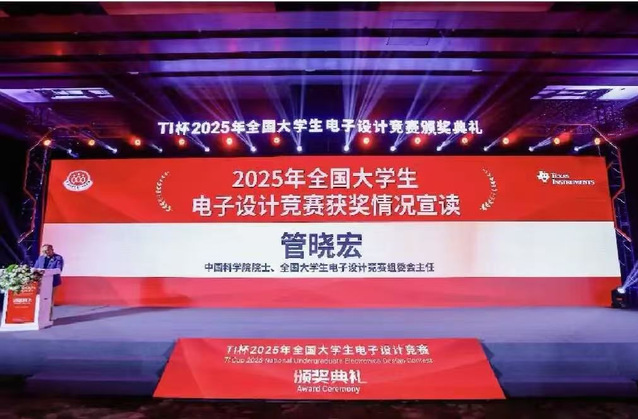 10月18日,2025年全国大学生电子设计竞赛(TI杯)颁奖典礼在北京举行。中国科学院院士、全国大学生电子设计竞赛组委会执行主任管晓宏,德州仪器(TI)公司副总裁及中国区总裁姜寒,竞赛组委会委员、专家组成员与获奖师生代表逾400人出席活动。我院22级学子马硕,翼凯昆,王洛斯获全国一等奖,在涂超老师的带领下受邀赴京参加2025全国大学生电子设计竞赛颁奖典礼。